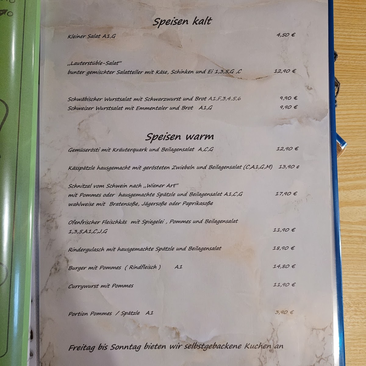 The menu at Lauterstüble Hayingen feels thoughtfully composed, balancing hearty Swabian traditions with lighter, more contemporary choices, and it leaves a clear impression of comfort-driven cooking done with care. Classic dishes like Käsespätzle and Schweizer Wurstsalat highlight the restaurant’s regional roots, delivering familiar flavors that are rich, filling, and satisfying. For guests looking for something a bit more modern, Flammkuchen Mit Lachs Und Shrimps offers a pleasant contrast with its crisp base and seafood-forward topping, while the Lauterstüble Burger stands out as a reliable, crowd-pleasing option. The daily special, Tagesgericht Großer Salatteller Mit Obst Gebackener Banane Und Champions, adds welcome variety, combining freshness with a touch of sweetness and warmth. Meat lovers are well catered for with dishes such as Rehgulasch and Curry-putenschnitzel Mit Reis, both of which underline the kitchen’s strength in robust, well-portioned main courses. Simpler items like Nudel Mit Sosse and breakfast-style offerings such as Rührei Krosser Speck Und Würstle, Frische Weckle, and Joghurt Und Müsli round out the menu and make it suitable for different times of the day. To finish, desserts like Apfelküchle Mit Vanillesauce Und Eis and Käsekuchen provide a comforting, homemade touch, while a selection of drinks including Saft keeps things straightforward and refreshing. Overall, the menu feels cohesive and honest, focusing on familiar flavors, generous portions, and a range that can satisfy both traditional and casual dining expectations.